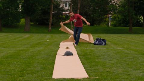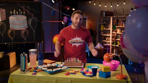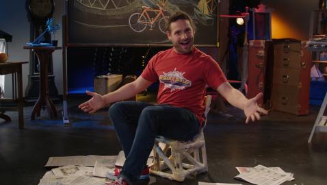 Éric examine la force d'une chaise en papier. Est-ce qu'elle pourra soutenir le poids d'une personne? On sait depuis longtemps que les triangles sont très solides, mais sont-ils vraiment les formes les plus puissantes? Allons voir!