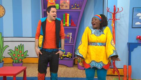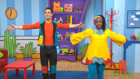 Madame Bonheur invite Louis, Josée et les enfants à regarder, à écouter et à imiter ses mouvements de danse qui leur permettront d'apprendre les parties du corps, ainsi qu'à améliorer leur motricité globale. Les enfants acquerront de nouveaux mots de vocabulaire, tout en faisant de l'exercice!