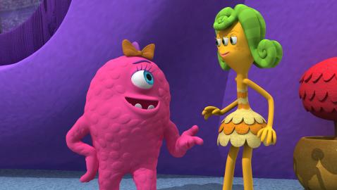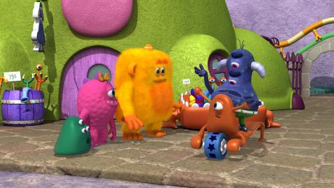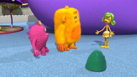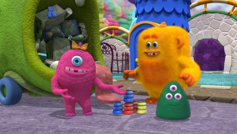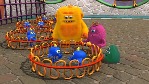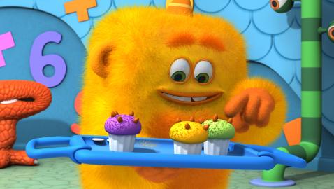 Concept abordé : plus. L'Escouade des monstres-maths aide un groupe de mini-monstres à comprendre le jeu de la chaise musicale en apprenant ce que veut dire le mot « plus ».
