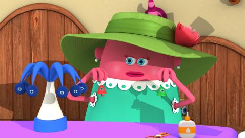 Concept abordé : pareil. Mademoiselle Chapeau-Monstre a beaucoup de difficulté à terminer la confection de trois monstros-chapeaux qu'un client doit venir chercher aujourd'hui.