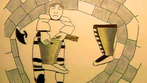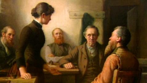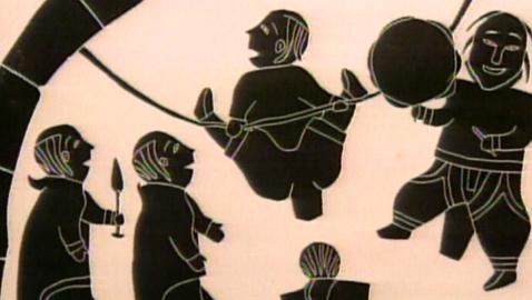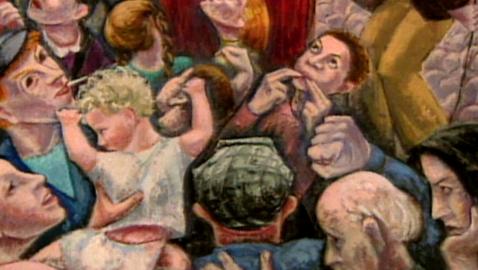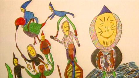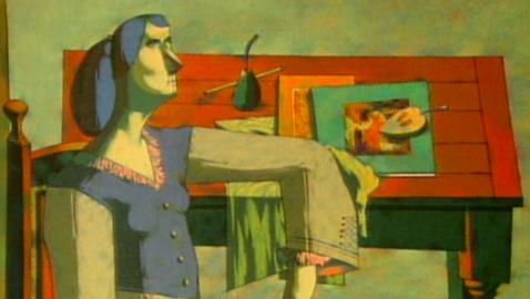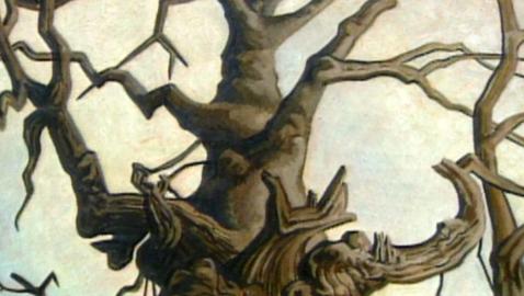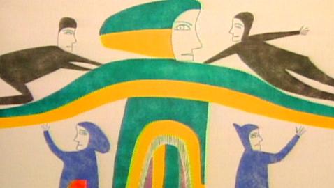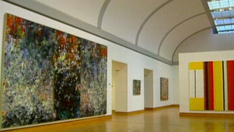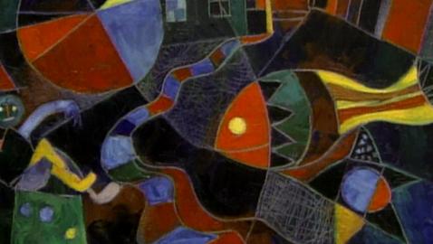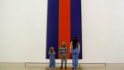 Les enfants analysent l'œuvre 3 + 4 + 1 de Paul-Émile Borduas, datant de 1956.