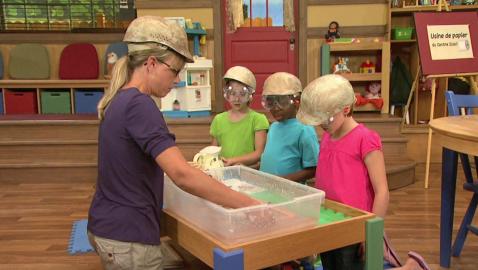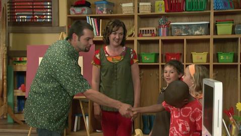 Dans cette émission, Carmen pose la devinette d'un plumeau à Pomme-Pomme. Les enfants rencontrent un concierge qui fait une démonstration de tous les outils de son travail : balai, porte poussière, vadrouille. Les enfants chantent avec Carmen « La maison reluit » et font différentes activités. À la fin, Carmen lit aux enfants l'histoire : « Boubou le cochon » pour développer la conscience du phonème « bou ».