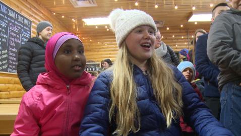 Zoé a choisi d'inviter Sumaya, qui est d'origine somalienne, au Festival des sucres. Pour Sumaya, il s'agit d'une toute première visite dans une cabane à sucre, une activité typiquement canadienne! Sur place, elle aura donc la chance d'en apprendre plus sur la fabrication du sirop d'érable et de danser sur une gigue enlevante!